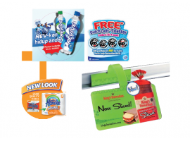 Shelf strips / Shelf talkers snap easily into...